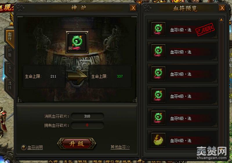 1、血符。血符能够提高人物非常多的上限。血符的升级是通过血符的碎片来升级的。很多玩家朋友要问了,血符碎片怎么样获得呢?实际上通过各种活动以及击杀boss的方法就可以获得了。小编要提醒的是,血符是不能够被注灵的。