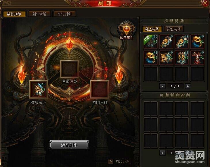 刻印装备无法进行神装、圣装的合成,玩家想合成神装、圣装需要拆解刻印材料方可进行。