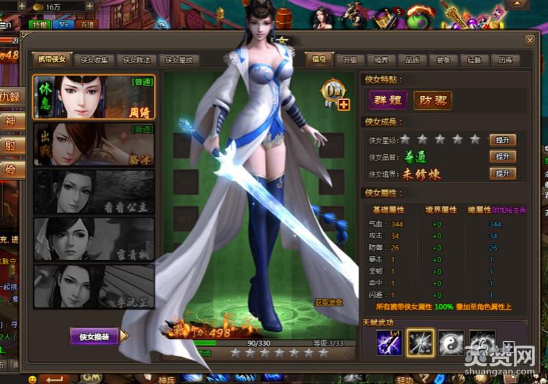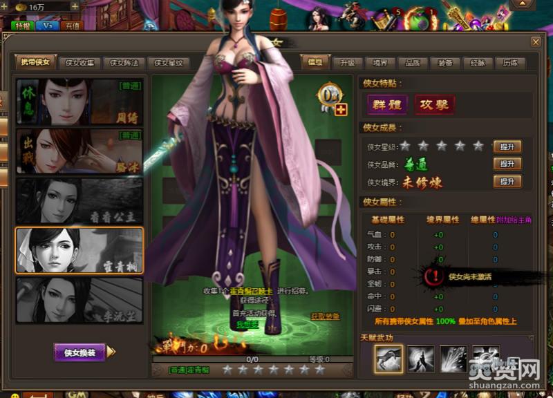 1、周绮。这是一个比较普通的女侠,只要是进入到游戏当中都可以获得。那么这个女侠的作用是什么呢?技能的主体效果还是不错的,一个是在开启了之后收到的伤害降低50%,另外一个在临近血量的时候给自己增加一个护盾。这个技能是非常可以的,但是攻击方面几乎都相当于没有。所以如果有其他的女侠的话,小编建议还是选择其他的女侠。