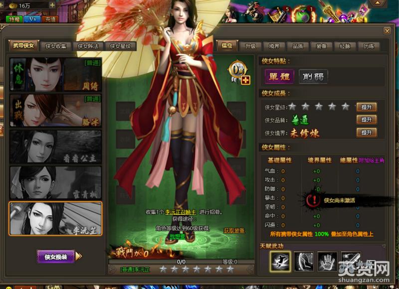 5、李涴芷。这个女侠任务到了60就可以使用了,技能是削弱对方的防御力,小编觉得还可以。虽然技能的描述不是很强,但是配合她自身的百分比回血非常的好用。所以小编觉得如果不充值的话,那么这个女侠可以一直用到游戏后期了。