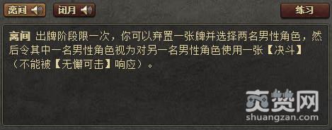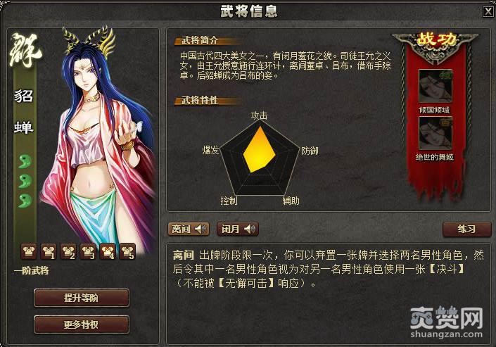 貂蝉的离间是她的核心技能,虽然无法对女性角色使用,但是还是非常强大的一个技能。是很稳定的输出,虽然有的队伍能够均衡双方的血量,但是貂蝉还是相当于每回合都能够废掉对方的手牌和血量。所以貂蝉一定要合理的运用这个技能,只有这个技能运用好了才是一个好的貂蝉。并且这个技能有非常多的妙用,比如破掉诸葛亮的空城,或者在集火的时候参上一脚。因为是固定的伤害,所以貂蝉一定要和队友一起激活,不然的话就浪费这个技能了。