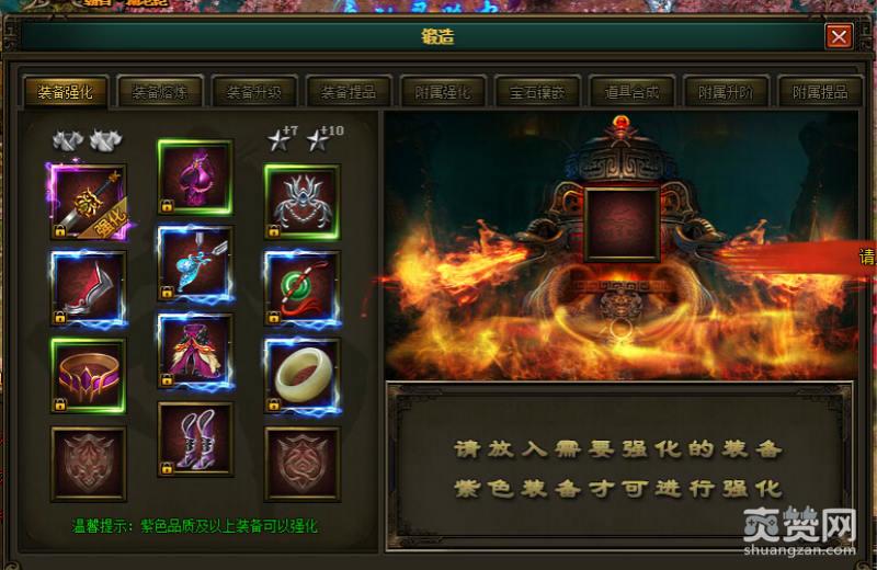 准备好了石头之后,我们稍微说一点强化要点.。首先要做的就是准备好320个强化石头,先选好3件加9或+10装备,然后这里很重要了,非常玄学的第1件点5下,再点第2件5下,最后剩余的10下,留给第3件装备。然后点击自动强化,这样才能够强化的成功率提到最高。