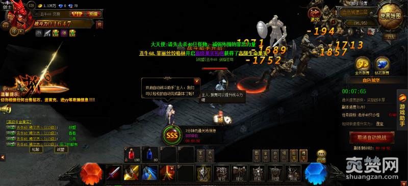 进入到副本当中,我们就会直接会看到各种的怪物出来了,我们战斗力高的话直接选择挂机就可以玩了。副本的通关评价是根据时间来定的。这个在进入副本的时候界面上也会有提示。三分钟之内通关的话,会得到sss的评价,这些都是非常直观的。