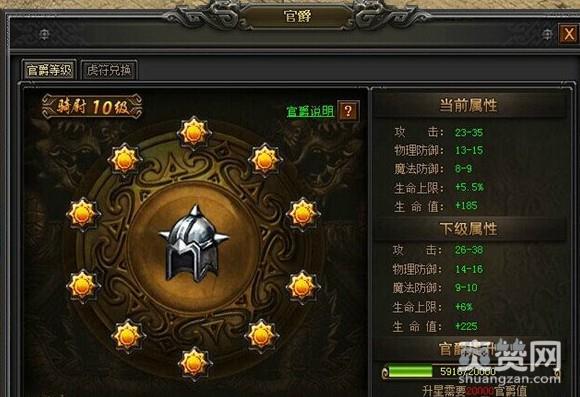在战天当中各种方法可以提升战斗力,官爵系统就是非常有效的方法。那么官爵应该怎么样提升呢?官爵的提升其实和坐骑很像。在战天当中的坐骑只有你存满马蹄铁,那么就能进阶,并且在中间不会扣除提升值。但是官爵连进度条是不一样的,如果没有的话直接就能提升了。战天中的官爵一共有十颗星,神马即可进阶。也就是说,每个官位都有10级。
