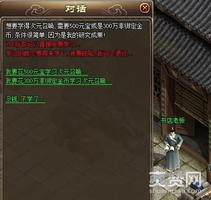 那么这个技能应该怎么样学习呢?在屠龙传说的世界当中,次元召唤这个技能只有道士职业的玩家才能学习,如果道士职业的玩家要学习该技能,那么就可以到龙城找到npc“书店老板”学习。但是该技能学习需要花费500元宝或300W非绑定金币,如果没有钱的话是学习不了的。但是如果持有屠龙传说VIP的证明的话,那么就不需收取任何费用,直接学习即可。当大家成功激活该技能后,在技能栏便能找到一个大眼睛的技能图标,这便是次元召唤技能。该技能能召唤出实力很强的召唤。