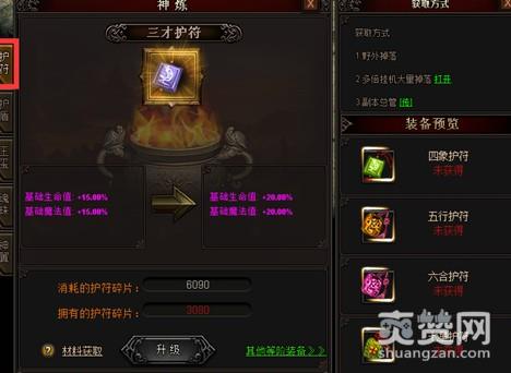 那么如何来拥有和提升护符呢,玩家可通过点击主界面的神炼图标进入护符领取界面。护符分为10个等级,等级越高的玉佩能够提供给角色更高的生命值加成和魔法值加成,让你在打BOSS、玩家PK当中不在为血少蓝少而烦恼。低级护符可以通过消耗护符碎片进行升级,成为更高一级的护符,带来更多的生命值加成。拥有高等级护符之后,一向脆皮的法神也能站撸BOSS啦!
