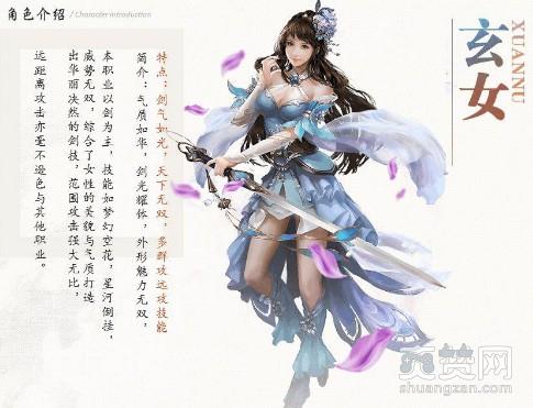 女性进入的职业是玄女。性别表现是女。特点:剑气如光,天下无双,多群攻远攻技能。这个职业气质如华,剑光耀体,外形魅力无双,本职业以剑为主,技能如梦幻空花,星河倒挂,威势无双,综合了女性的美貌与气质打造出华丽决然的剑技,范围攻击强大无比,远距离攻击亦毫不逊色与其他职业。