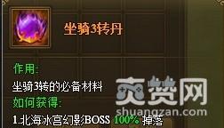 首先如果我们需要坐骑转职丹的话,那么就必须要进入四象玄门打小怪或者是打BOSS了,因为在那里才有一定几率获得。不同的层次坐骑丹也是不同的,就比如坐骑1转丹就是在四象玄门3、5层获得。但是我们一般需要的是坐骑灵蕴,这个就比较难获得,因为只在玄门5层BOSS才掉落,另外还可以在转职页面进行购买。