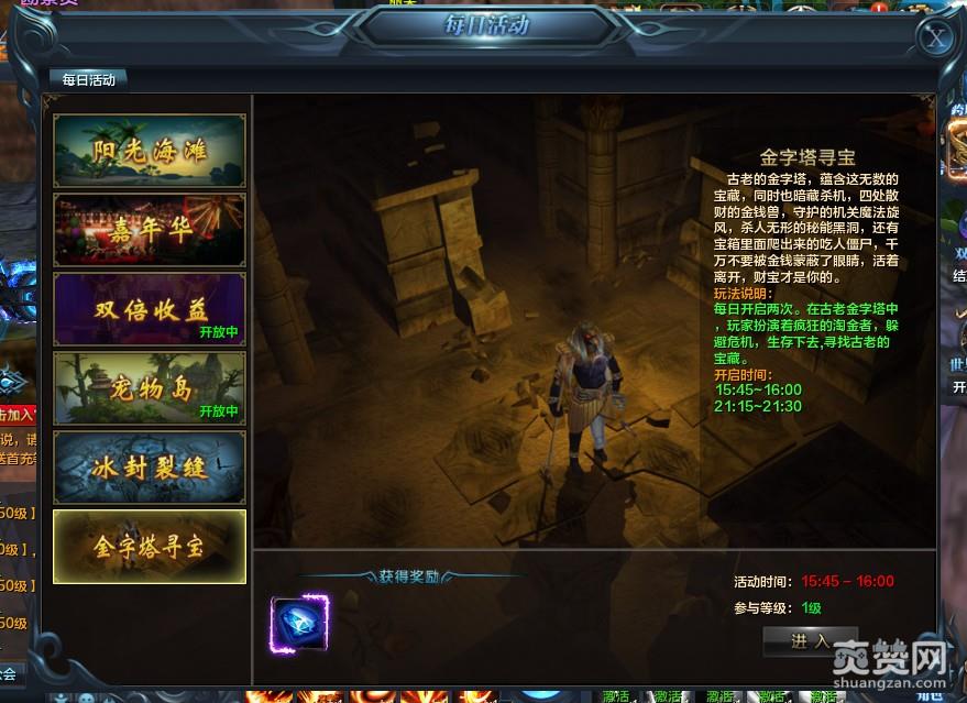 2、嘉年华。这个活动是一个类似于寻宝的活动,每天只会开启两次,玩家需要在欢乐嘉年华当中寻找神奇宝闸,注意躲避木马就可以了。只要获得相对的宝闸,那么就会有海量的经验值的奖励。