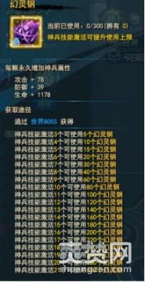 3、特殊的技能点升级除了需要消耗神兵灵能以外,还需要一定数量的【魔族之血】和【魔族之魂】。
